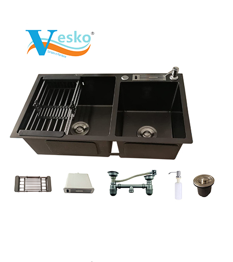 EVIER 80/45 EXTRA NOIRE DOUBLE CUVES UN SIPHON 22 CM