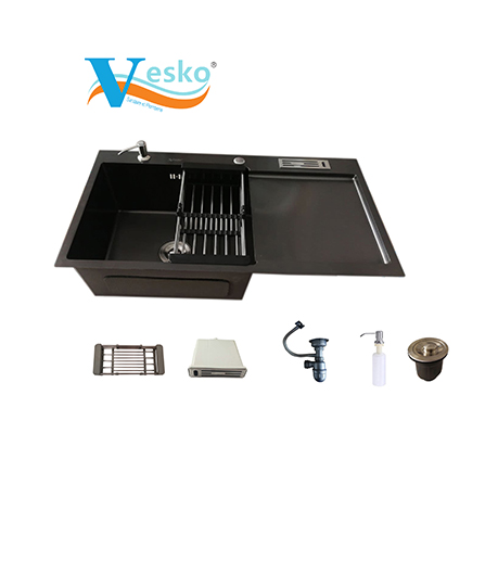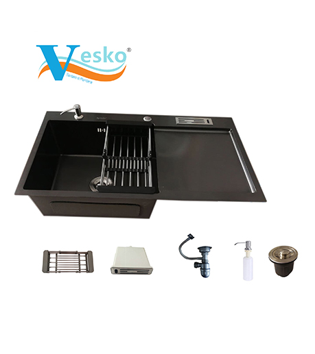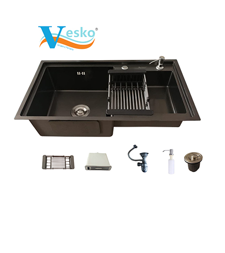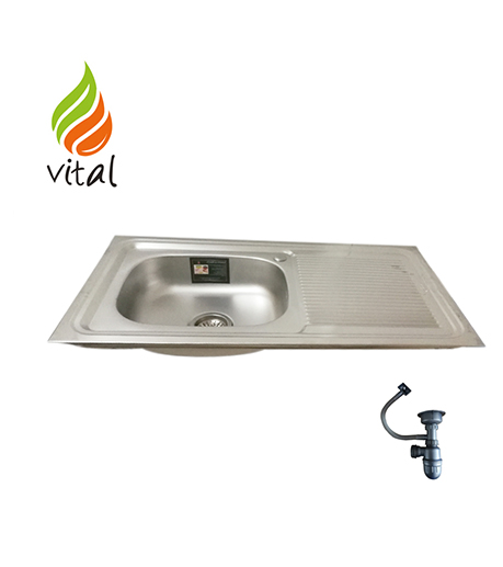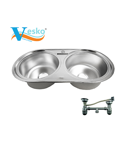 EVIER 88/45 INOX DOUBLE GRANITE ROND +SIPHON VESKO